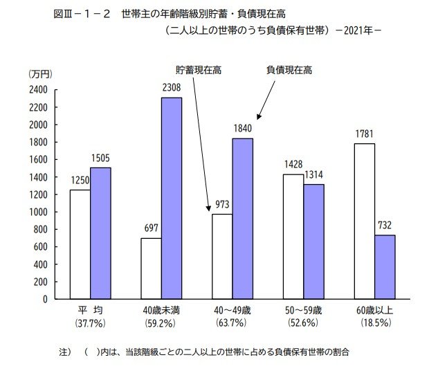 もう少し現状を把握しやすいように、負債保有世帯に絞って見てみましょう。