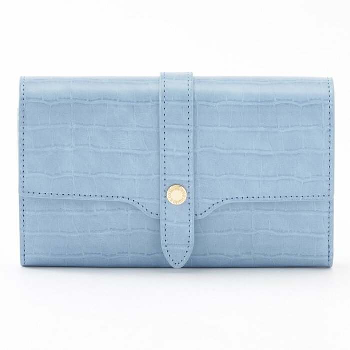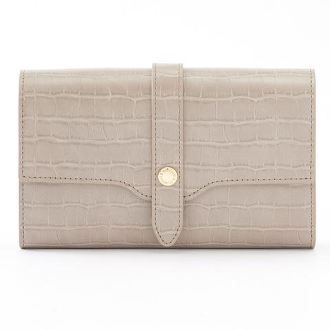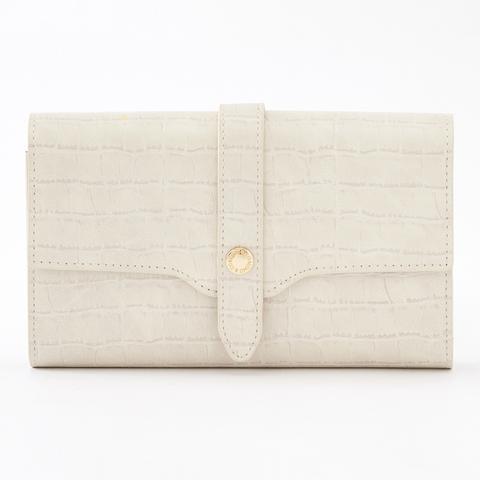 高見えするクロコ型押しデザインの長財布です。サイドがジャバラ仕様になったデザインなので、中身が見渡しやすいのも特徴です。通帳なども入る大きめサイズ。カラーは高級感のあるホワイト・アイボリー・サックスの3色を展開。