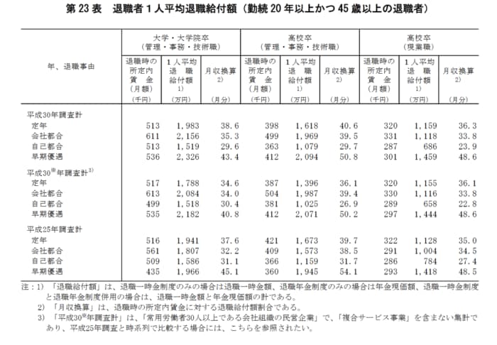 最後に会社員の退職金について、厚生労働省の「平成30年就労条件総合調査 結果の概況(一時金・年金)の支給実態」を参考に見ていきましょう。