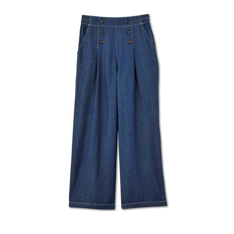 6つのボタンがマリン風でかわいいワイドパンツです。サイズはM~LLがあり、カラーはブルーとネイビーの2種があります。