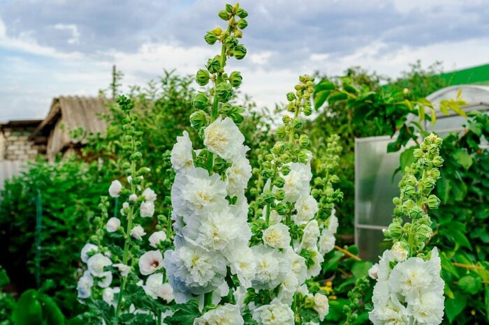 初夏から夏にかけ、ハイビスカスに似た花を咲かせるホリホック。