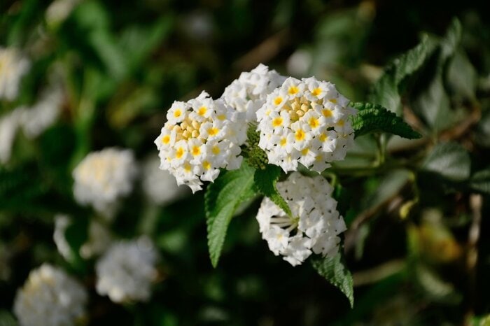 小さな花を集合させて手毬のような花房をつくるランタナ。春から秋にかけて開花する常緑の低木です。半日陰でも育ちますが、日当たりがよいほうが花付きもよくなります。