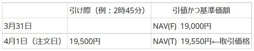 もし、ブラインドにせず前日3月31日の引値で算定した基準価額NAV(F)で4月1日の売買が可能だとすると、買いたい人は引け際までマーケットを見て発注することにより、上記例だとほぼリスクなしでNAV(T)の550円の評価益が手に入ります。