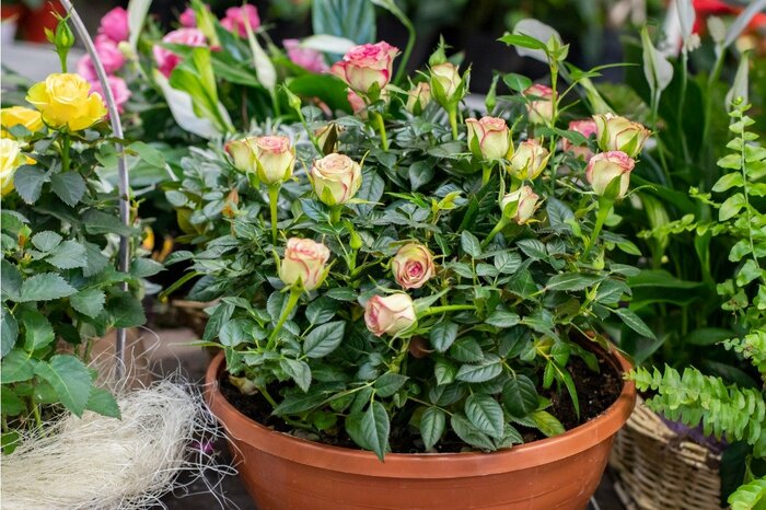ミニバラは、中国原産のロサ・キネンシス・ミニマを元に改良された小輪咲きの品種。花や丈、葉も全てが小ぶりで、たくさんの品種が販売されています。香りはやや控えめ。