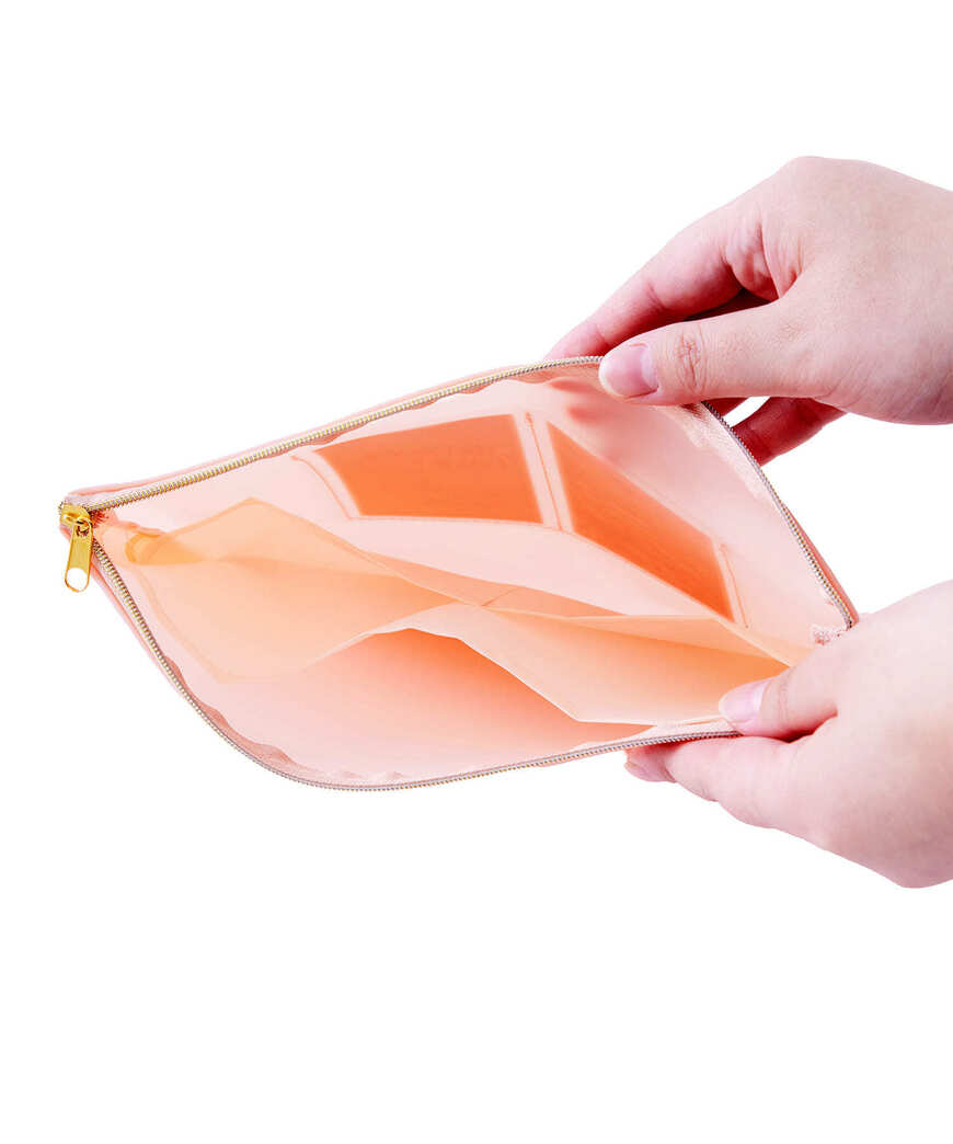 こちらはフラットポーチです。サイズは、縦19×横26cmとかなり大きめ。