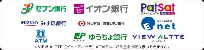 セブン銀行やイオン銀行、ローソンATM、PatSatのほか、E-netなどが利用でき、さらにみずほ銀行や三菱UFJ銀行といったメガバンクやゆうちょ銀行のATMを利用することもできます。