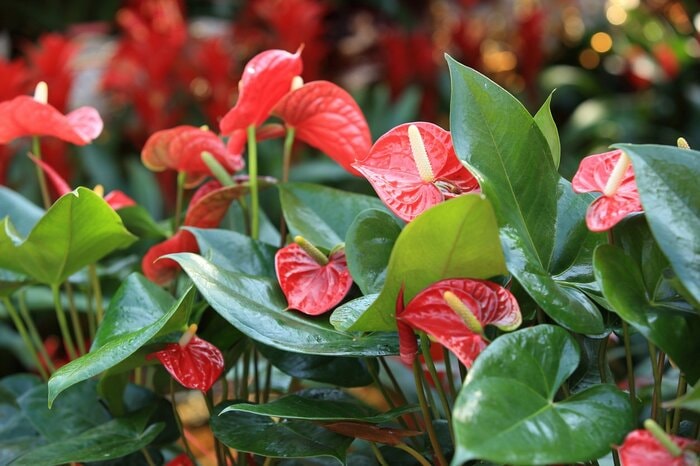 アンスリウムはエキゾチックな雰囲気が魅力の観葉植物。鉢植えにしてベランダや室内に飾るのが主流ですが、切り花としても楽しめる植物です。開花期は5~10月。