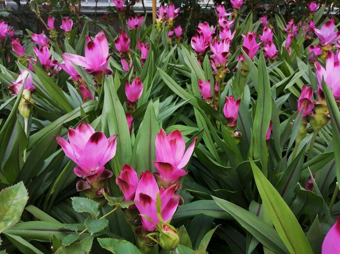クルクマは花びらを幾重にも重ねた縦長の花姿が注目のトロピカルフラワー。球根の植え付け適期は、暖かくなった5~6月。開花期は5~10月です。
