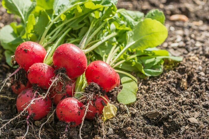 はつか大根とも呼ばれ、種まきからひと月程度で収穫できる野菜。とても育てやすいので初心者にもオススメです。植え付け時期は3~5月と9~10月で、収穫時期は種まきから約ひと月後です。