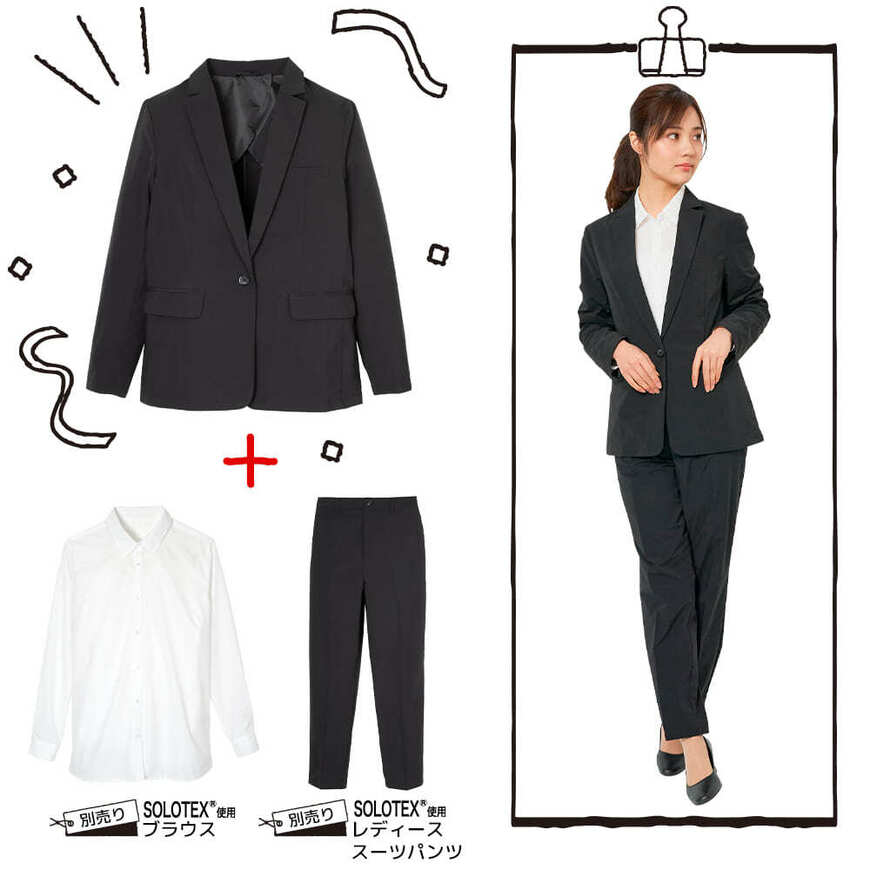 耐久撥水加工付きで、洗濯機でも洗えるスーツジャケットです。デザイン性も優れていて、普通のジャケットにしか見えません! 軽量で薄手の加工なので、夏場も涼しく着ることができます。
