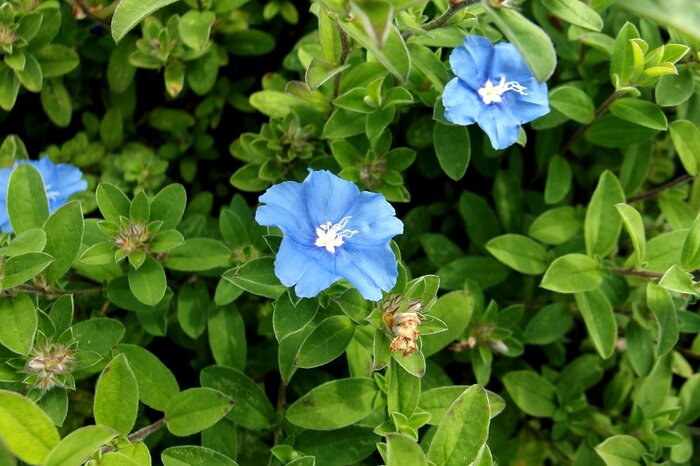 オーストラリア原産の多年草ですが、寒さが苦手なので一年草として扱われます。青や白、ピンク色をした、星形の花も清々しい印象です。花期は5~9月。