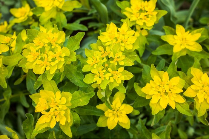 どれも葉色が美しく独特の存在感があるので、花壇にひと株植えるとオシャレな雰囲気に。園芸品種「ユーフォルビア・ポリクロマ」は黄色の可愛らしい花を咲かせます。