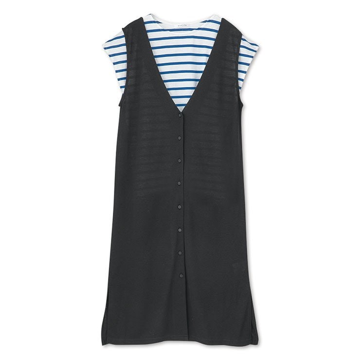 2. 着回し力抜群! しまむらのジレ+ボーダーTシャツセット
