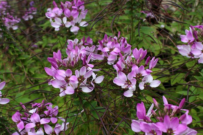 夏から秋にかけ、可愛らしくもユニークな花を咲かせるクレオメ。蝶にも似たその姿から西洋風蝶草(セイヨウフウチョウソウ)とも呼ばれています。