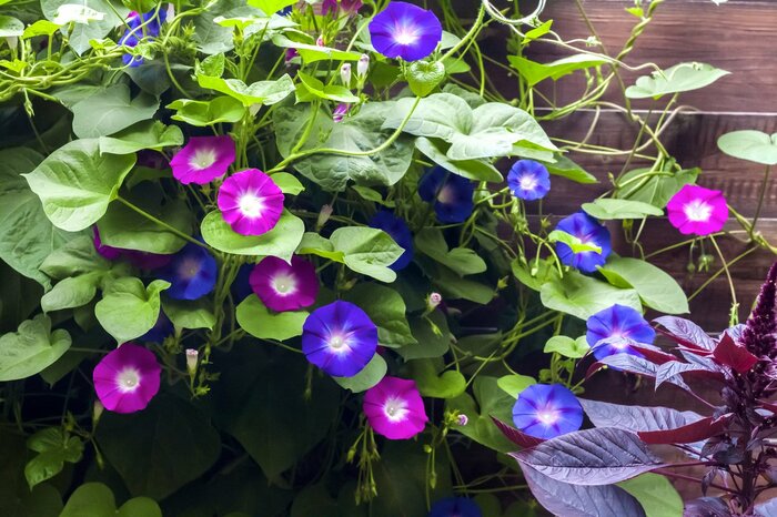 暑さ対策のグリーンカーテンとしても重宝する朝顔。アサガオは高温多湿に強く、植え付けるには梅雨前のタイミングが最適です。アサガオのつるは手で支柱やネットに誘引し絡ませましょう。※参考価格:120円(種)~500円前後(3号ポット苗)