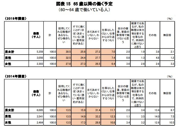 同資料では、60~64歳で働いている人を対象に、65歳以降の働く予定を調査しました。
