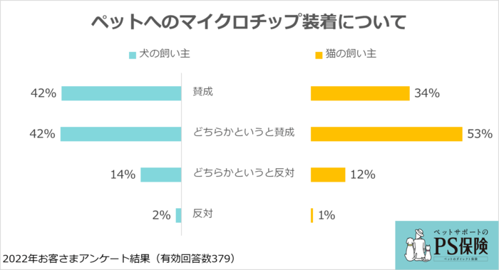 同調査では、ペットのマイクロチップ装着についての賛否も聞かれています。