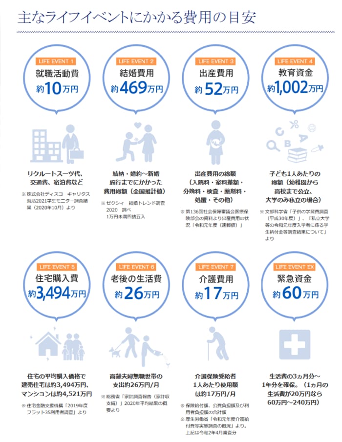 30~40代でかかるお金、準備すべきお金は大きな金額になります。日本FP協会より、ライフイベントにかかる費用の目安を確認しましょう。