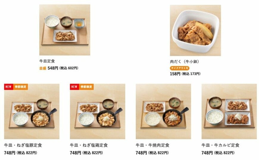 続いては吉野家の牛皿メニューを紹介。吉野家は牛皿の定食メニューが充実しています。