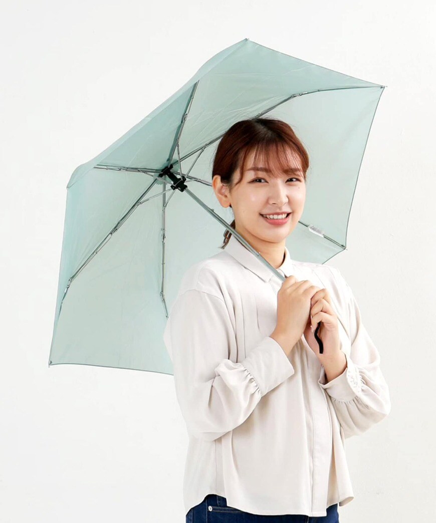厚さわずか2.5cmの超薄型の折り畳み傘です。ミント・ベージュ・ネイビーの3色展開でお値段は1,100円です。