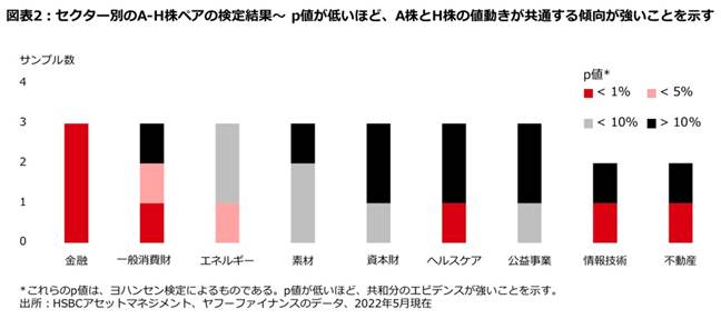 - 検証した25のA-H株ペアのうち、9つのペアが共和分の証左を示している。なお、金融セクターのA-H株ペアでは共和分の可能性が高い模様である。