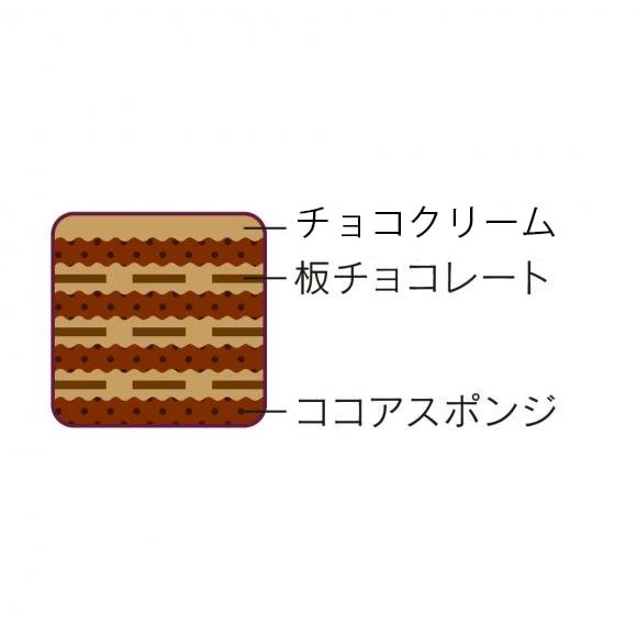 ベルギー産クーベルチュールチョコレートを使用した香り高いスイートチョコクリーム、パリパリとした板チョコレートの食感が楽しめるデコレーションケーキです。仕上げにベルギー産クーベルチュールスイートチョコレートを使用したチョコクリームを絞り、生チョコレート、チョコレート、トリュフをふんだんに飾っています。