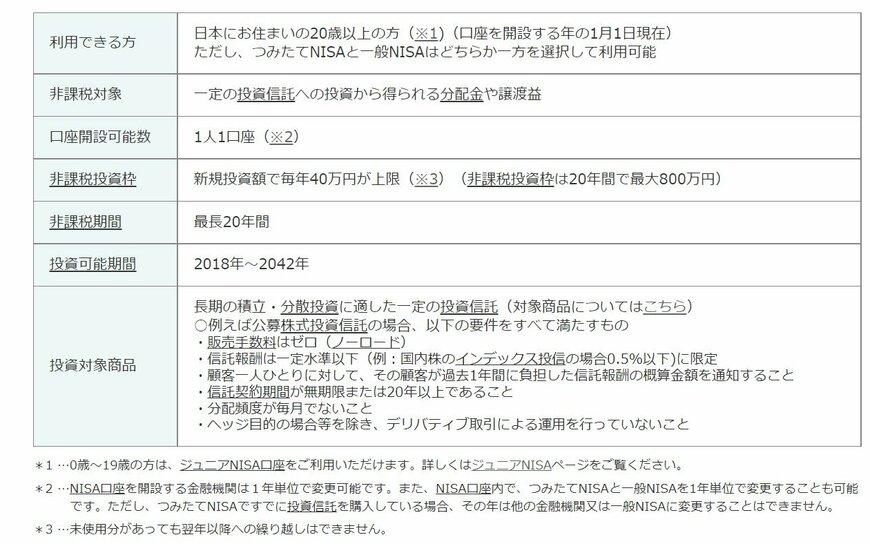 つみたてNISAとは、特に少額からの長期・積立・分散投資を支援するための非課税制度です。主な特徴は以下の通りです。