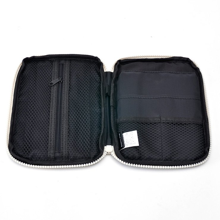 内側には、大小さまざまなポケットが5つついています。大きさは、縦:19cm×横:13.5cmです。クッション性のある素材が使われているので、スマホなどを収納するのにも使えます。文房具やコスメアイテムなど、小分けして収納したいアイテムを入れるのにも便利ですね。