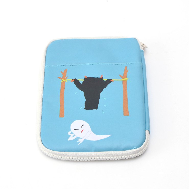 絵本の表紙をそのままに、マルチポーチ化したアイテムです。上記画像の「うみぼうずがでる!!」のカバーを元にしたものの他に、「おばけのてんぷら」のカバーをマルチポーチ化したものの2種があります。お値段は、890円(税込 979円)です。