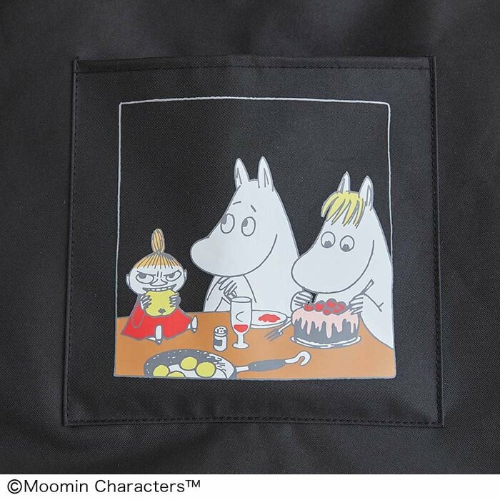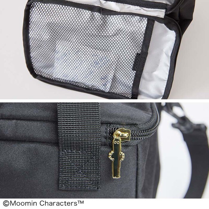 ショルダータイプなので、肩に掛けられて両手があくのも嬉しいポイント。シンプルなブラックベースなのでどんなコーデにも合わせやすく、ムーミン・リトルミイ・スナフキンが描かれたカラフルなタグが大人かわいいアクセントになっています。
