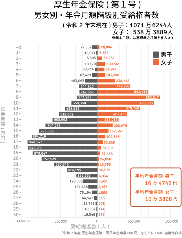 【早見表】厚生年金・受給額別の人数(1万円レンジごと)
