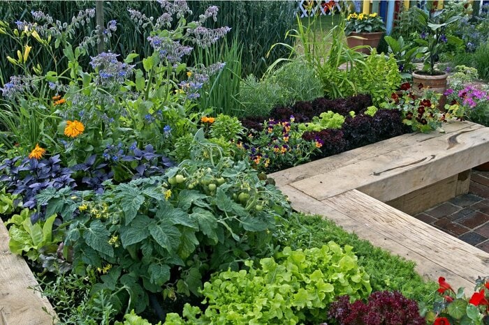 ポタジェガーデンは観賞用ガーデンとしても楽しめます。花がキレイな野菜や香りのよいハーブを一緒に植えると、見た目もオシャレなガーデンになるでしょう。