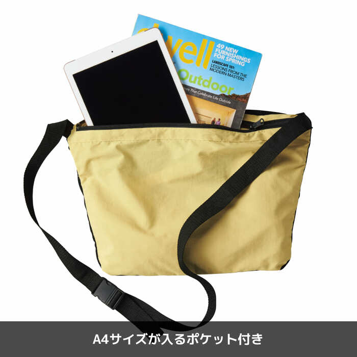 ポケッタブルは、A4サイズが入るポケット付きで小物も入れることができます。高撥水仕様なので、急な雨などでも1着持っていると安心のアイテムですね。カラーはベージュ・グリーン・サックス・イエローの全4色です。