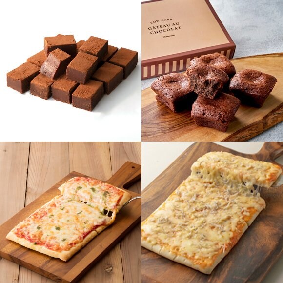 ・詰め合わせ内容:フローズンゼリー(ぶどう・白桃・ブラッドオレンジ・マンゴーパッション・シチリアレモン)5種からいずれか3種×各2個、ホイップクリーム大福 抹茶×1個、ホイップクリーム大福 チョコ×1個、糖質70%カットのアイス マダガスカルバニラ(1袋4個入)×1袋、糖質70%カットのアイス あまおう苺(1袋4個入)×1袋、糖質88%カットのとろけるショコラ 生チョコ風×1箱、オーブンでそのまま焼けるピザ マルゲリータ×1袋、オーブンでそのまま焼けるピザ しらす明太チーズ×1袋、糖質82%カットのガトーショコラ6個入×1箱(合計25個)