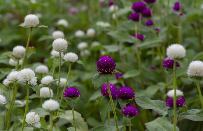 センニチコウは、夏から秋まで花の色があせずに咲き続ける一年草。細い枝先に、ピンクや赤紫のボール型の花を咲かせます。カサカサした触感が特徴で、ドライフラワーとしてもよく利用されます。※参考価格:200~400円前後(3号ポット苗)