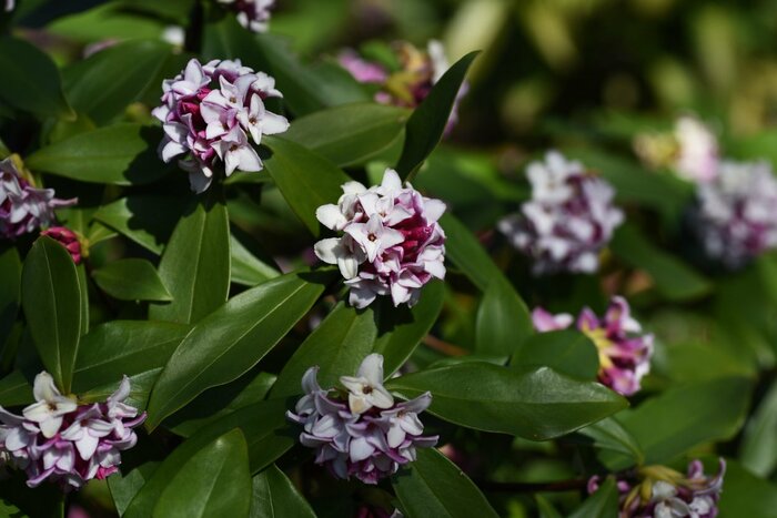 2~4月頃に甘い香りの花を咲かせるジンチョウゲは、樹高約1メートルの常緑低木。夏のクチナシ、秋のキンモクセイと並ぶ三大香木のひとつです。
