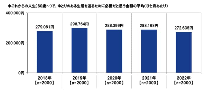 一方で、「ゆとりのある生活を送るために必要だと思う金額」は月平均27万2635円でした。