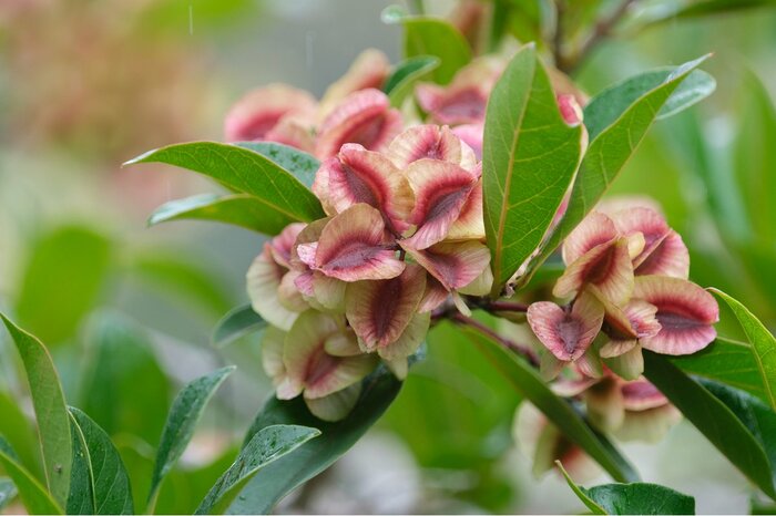 細い葉と樹形が美しい常緑低木。秋から冬にかけて葉がワイン色に染まる「ドドナエア・プルプレア」は、色の変化も魅力な園芸品種。個性的な雰囲気があり、シンボルツリーにも向いています。