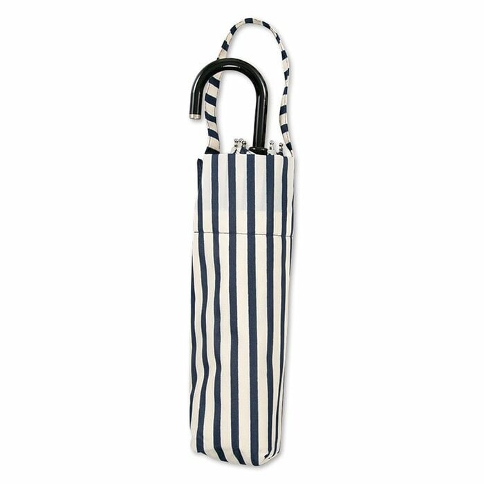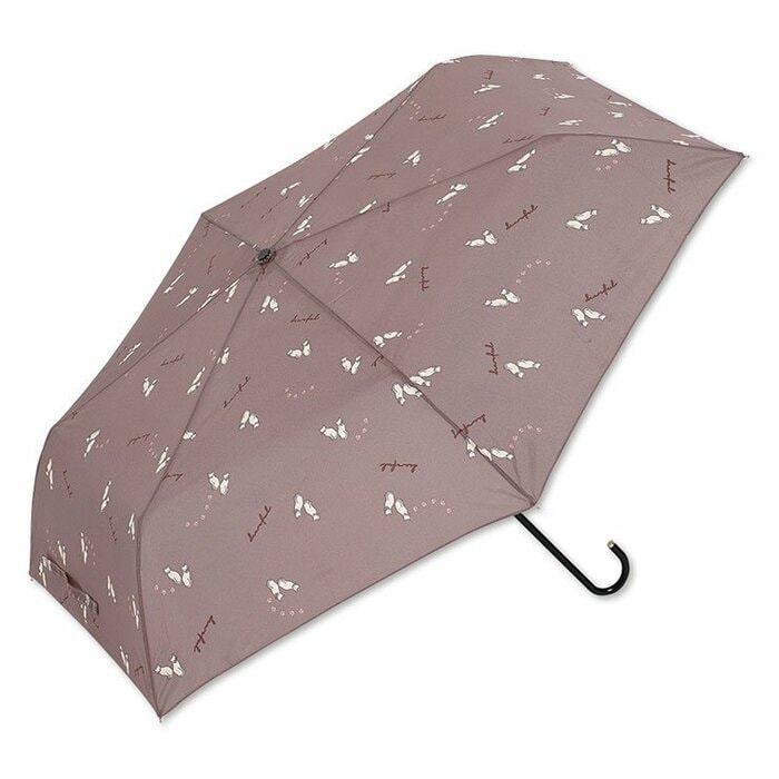 曲がり手元に猫と肉球のモチーフを掛け合わせた、可愛くお洒落な折り畳み傘。UVカット90%以上で雨の日も紫外線ケアができ、付属の傘袋には吸水生地を使用しているので濡れた後の収納時も安心です。カラーは、ブラウンとグレーの2色。ネイビーカラーのストライプ柄も。サイズは、全長:29㎝、親骨の長さ:55㎝、直径:97㎝となっています。