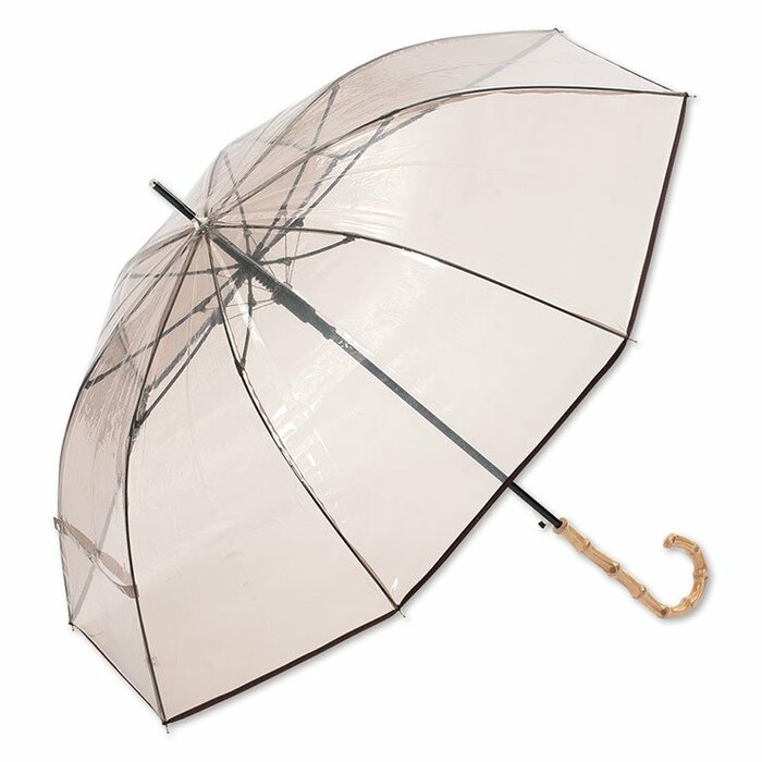 トレンドのビニール傘に竹手元を掛け合わせたオシャレな雨傘。落ち着いたブラウンカラー×裾のパイピングがアクセントな大人可愛いデザインです。ワンプッシュで開く便利なジャンプ傘。手元が竹でできているおしゃれなデザインで、ビニール傘では珍しいですね。サイズは、全長:約90㎝、親骨の長さ:60㎝、直径:100㎝です。