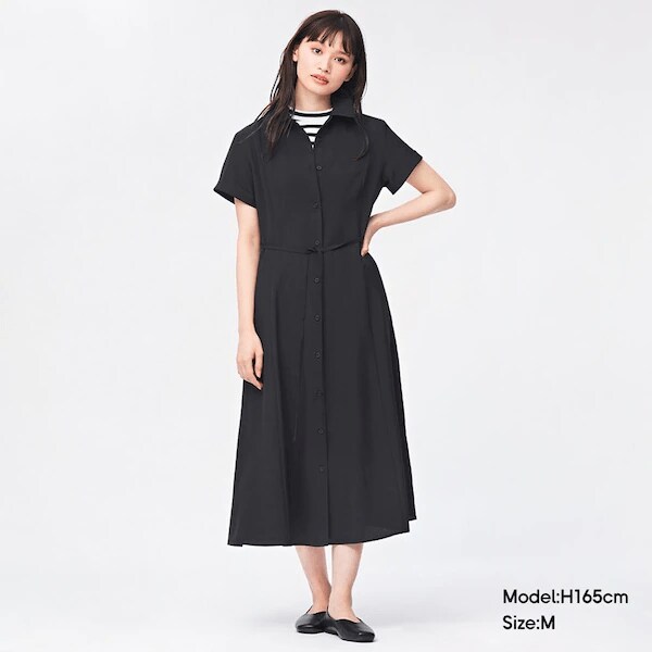 2. これ1枚で夏のシックコーデが完成! 【GU】半袖カラーシャツワンピース