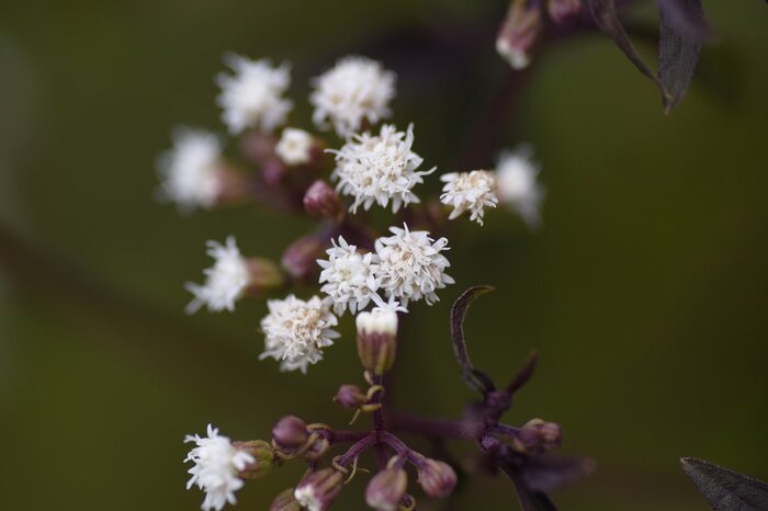 紫色の花が咲く品種が代表的ですが、オススメなのはダークカラーの葉に白い花を咲かせるユーパトリウム・チョコレート。カラーリーフとしても庭を彩り、冬前には黄色に紅葉する姿も楽しめます。