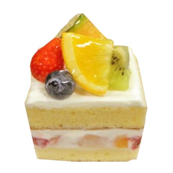 小ぶりながらも、キラキラ色とりどりのフレッシュフルーツは写真映え抜群のルックス。ミニチュアのデコレーションケーキのようで、かわいらしいですね。スポンジケーキにサンドされているのはホイップクリームと苺、洋梨や黄桃のシロップ漬けです。ていねいに入れた紅茶と合わせてみてはいかがでしょうか。
