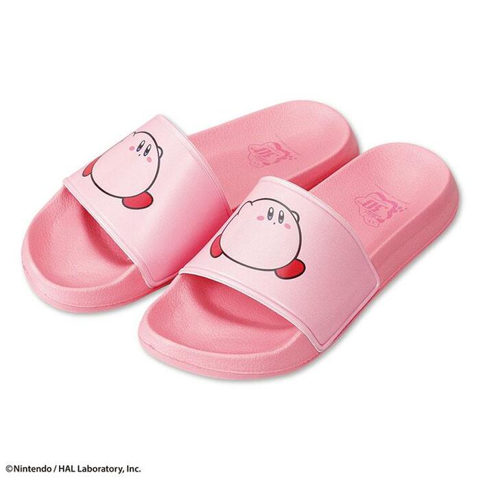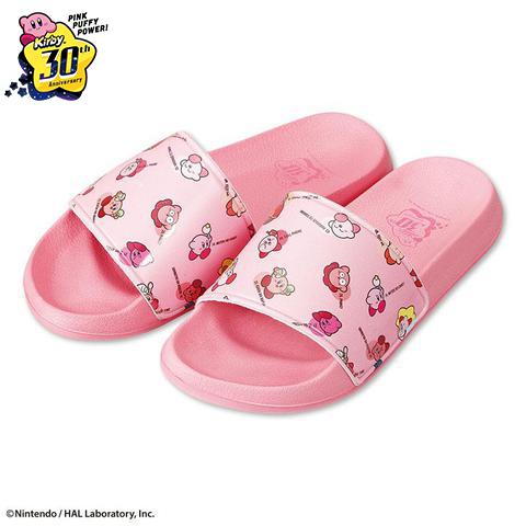 星のカービィ30周年デザインのシャワーサンダルです。全3種類で、まんぷくカービィ・お昼寝タイムカービィ・記念アートのカービィが総柄でデザインされたものから選べます。サイズもS・M・Lの3サイズを展開。