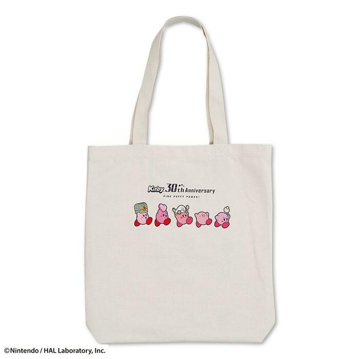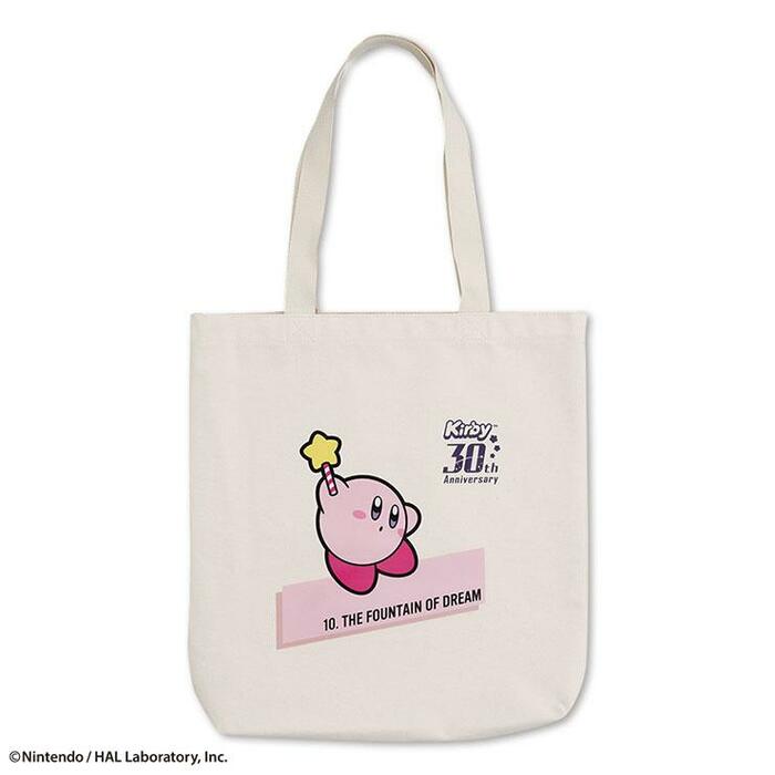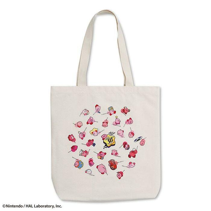星のカービィ30周年のトートバッグです。全4種類を展開しており、どれもカービィがご機嫌にかわいくデザインされています。