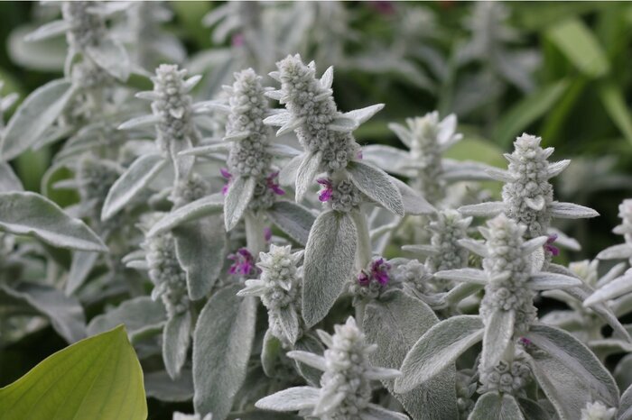 ハーブとしても利用されるラムズイヤーは、全体がモフモフの白い毛に覆われた植物。名前のとおり「羊の耳」を思わせる、ぬいぐるみのような姿が可愛らしいですよ。