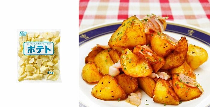 下ごしらえに手間も時間もかかるじゃがいも。この冷凍ポテトは、皮をむいて使いやすいサイズにカットしたあと、茹でて急速凍結しているのですぐに使えます。