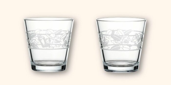 コーヒー豆を収穫する女性の姿が描かれたグラスです。氷を入れてソフィアを注げば、暑い夏をすっきりと過ごせるアイスコーヒーの出来上がり。夏を涼しくしてくれそうなグラスです。
