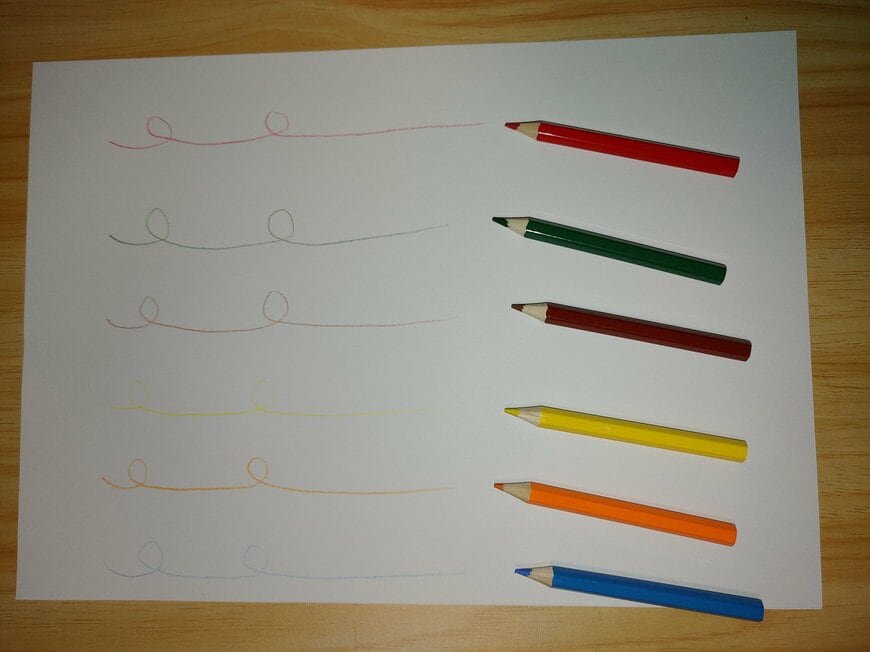 上の写真のように、A4の普通紙で書き心地をチェックしてみました。黄色と水色が、やや発色が悪い感じがします。