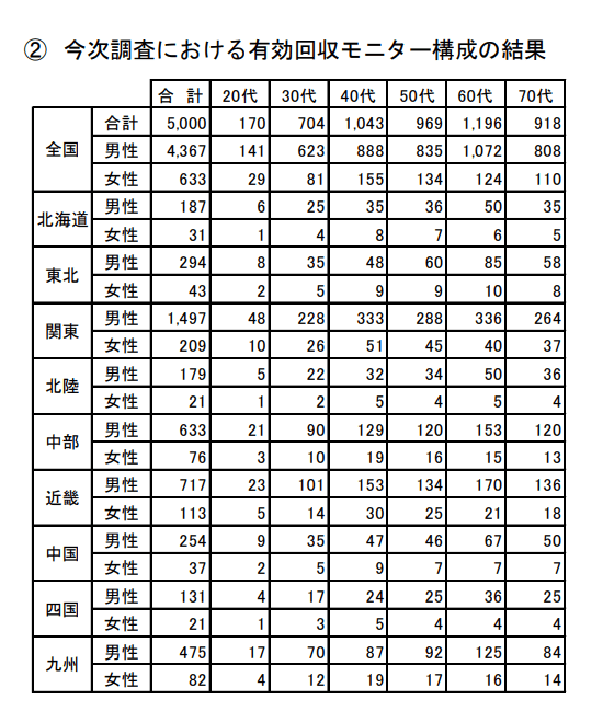 ちなみに、同調査は以下のような地域や年代でおこなわれています。